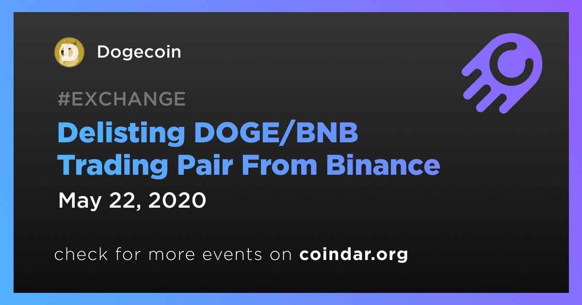 Dogecoin DOGE: Delisting DOGE/BNB Trading Pair From Binance