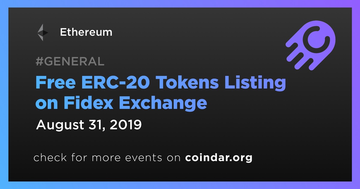 Ethereum ETH: Free ERC-20 Tokens Listing on Fidex Exchange