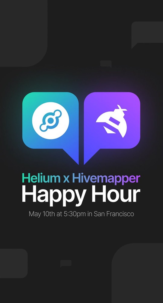 The @helium x @Hivemapper SF meetup is around the corner! If you’re in the Bay Area, join us on Tuesday 5/10 @ 5:30pm PT to get together with the local community over drinks, bites, and good company 🎈🗺. Details + RSVP here: bit.ly