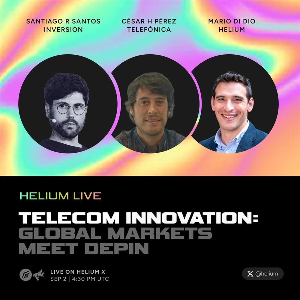 🎙️ Speakers: Santiago R Santos (Inversion) Sesar.eth (Telefónica) Mario Di Dio 🎈 (Helium)