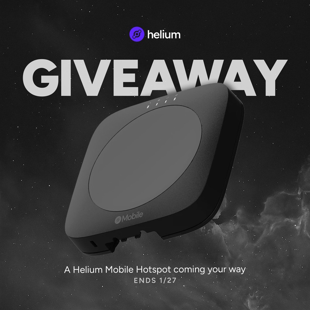 Helium has opened a promotional campaign offering two Helium Hotspots. Participation requires standard social actions on X, with two winners to be selected. The giveaway is limited to U.S. residents and runs until January 27. The