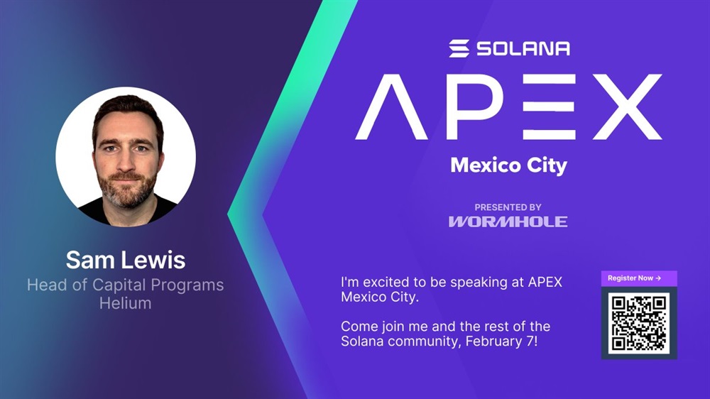 Helium will be participating in an event in Mexico City on February 7th. Sam Lewis, head of capital programs at the Helium Foundation, is scheduled to speak at the event hosted by Wormhole and Solana.