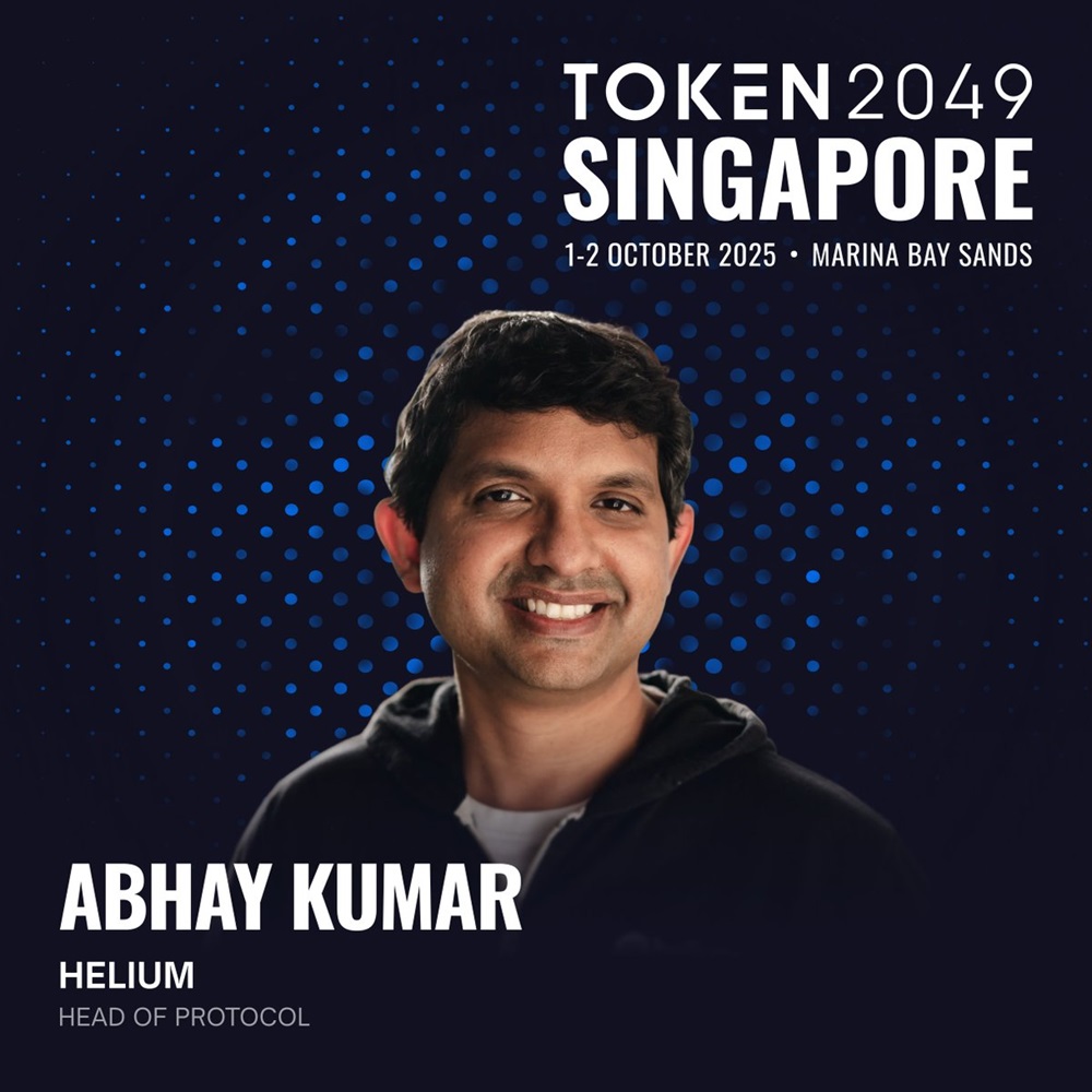 Helium is scheduled to address the TOKEN2049 conference in Singapore on October 1–2, outlining perspectives on open connectivity.
