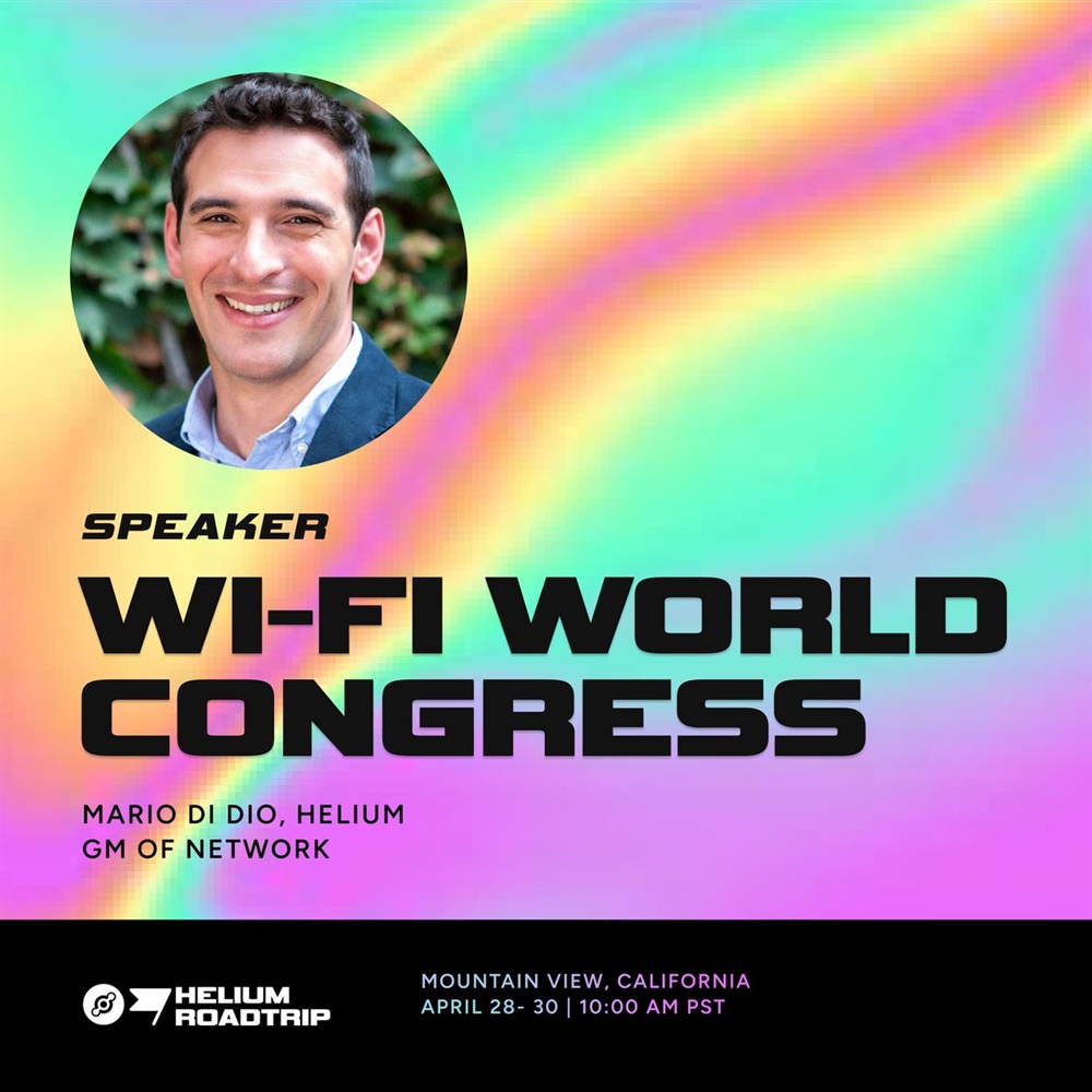Helium will participate in the Wi-Fi World Congress by Wi-Fi NOW, scheduled to take place in Mountain View, from April 28 to 30. Mario Di Dio, general manager of network at Helium, will present on how Helium is transforming legacy telecommunications companies and the future of connectivity.