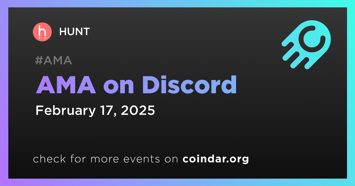 HUNT will host an AMA on Discord on February 17th at 13:00 UTC. The event will include several programs, such as Hunt updates, project showcase, an online network with builders, and a raffle from POAP NFT Minters.