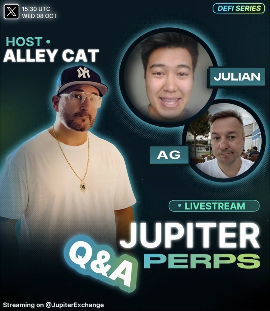 Jupiter will host an AMA on X focused on its perpetual contracts on October 8th at 03:30 UTC. The discussion is expected to address leverage limits, trading fees and the addition of new trading pairs.