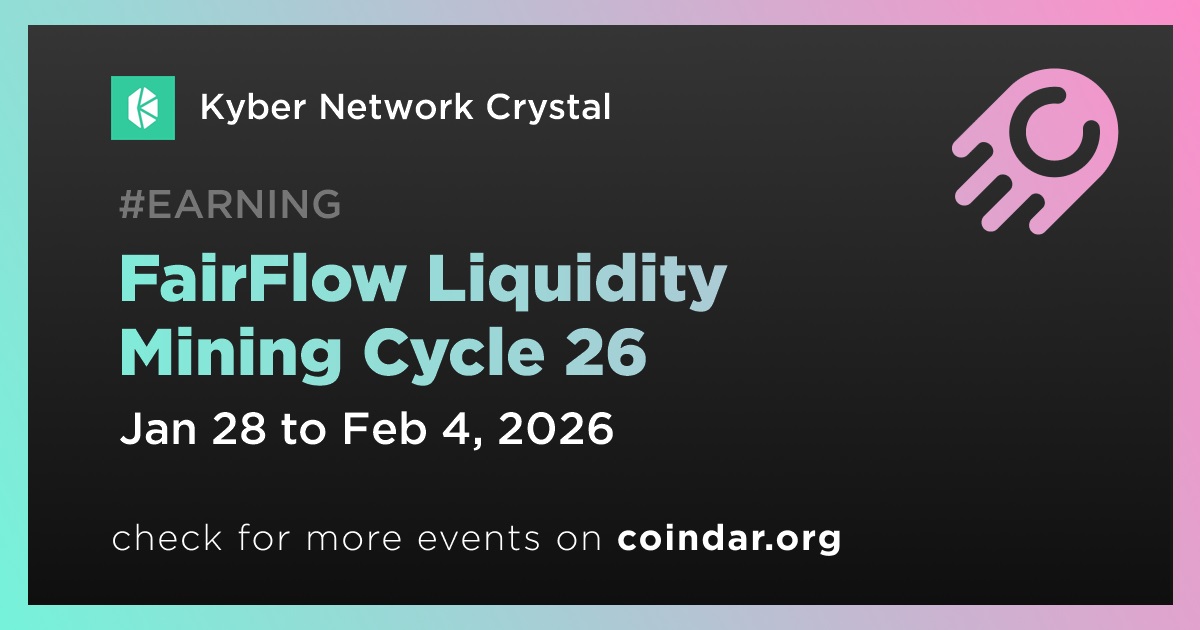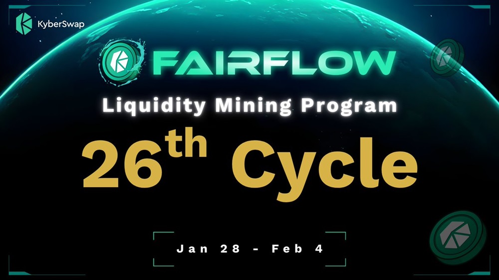 Kyber Network Crystal has launched the 26th cycle of its FairFlow Liquidity Mining Program. The mining period runs from January 28 to February 4 and is available across Ethereum, BNB Chain, Arbitrum, and Base. Participants can earn a share of 26,000 KNC along with additional rewards distributed during the cycle.