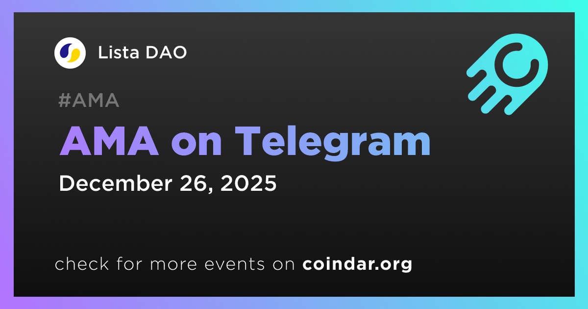 Lista DAO will host an AMA on Telegram on December 26th at 10:00 UTC to outline forthcoming products, planned market expansions and a scheduled collaboration with U. The session will be conducted on Telegram.