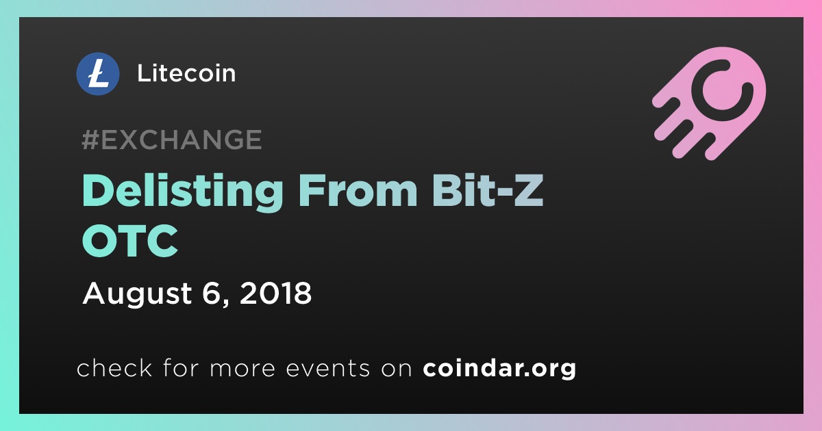 Bit-Z OTC market will delist LTC, MCO, NULS at 16:00 August 6, 2018 (UTC/GMT+08:00).