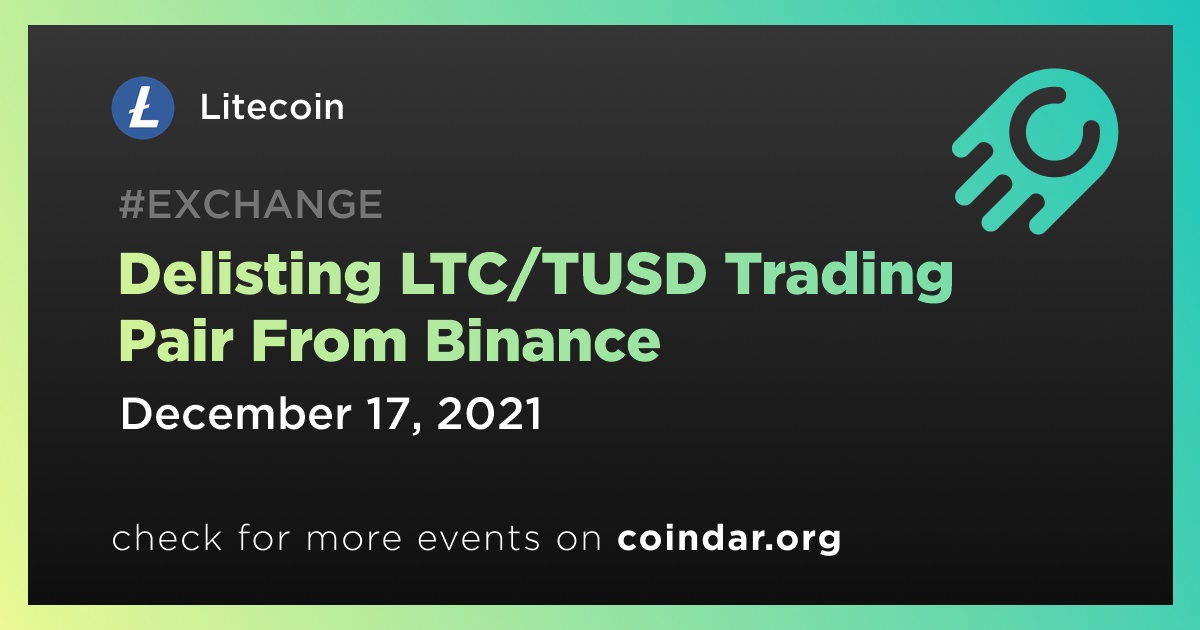 Litecoin LTC: Delisting LTC/TUSD Trading Pair From Binance