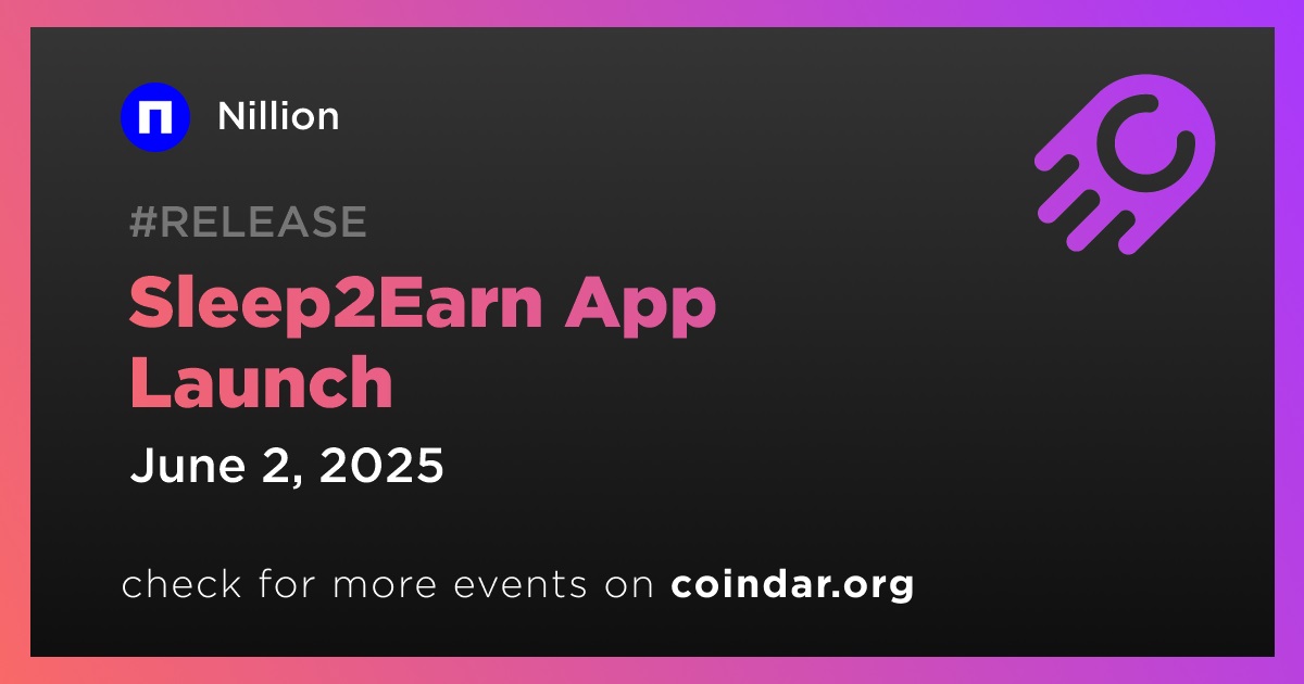 Nillion will launch the Sleep2Earn application on June 2nd, providing a link to a detailed overview hosted by Stadium Science.