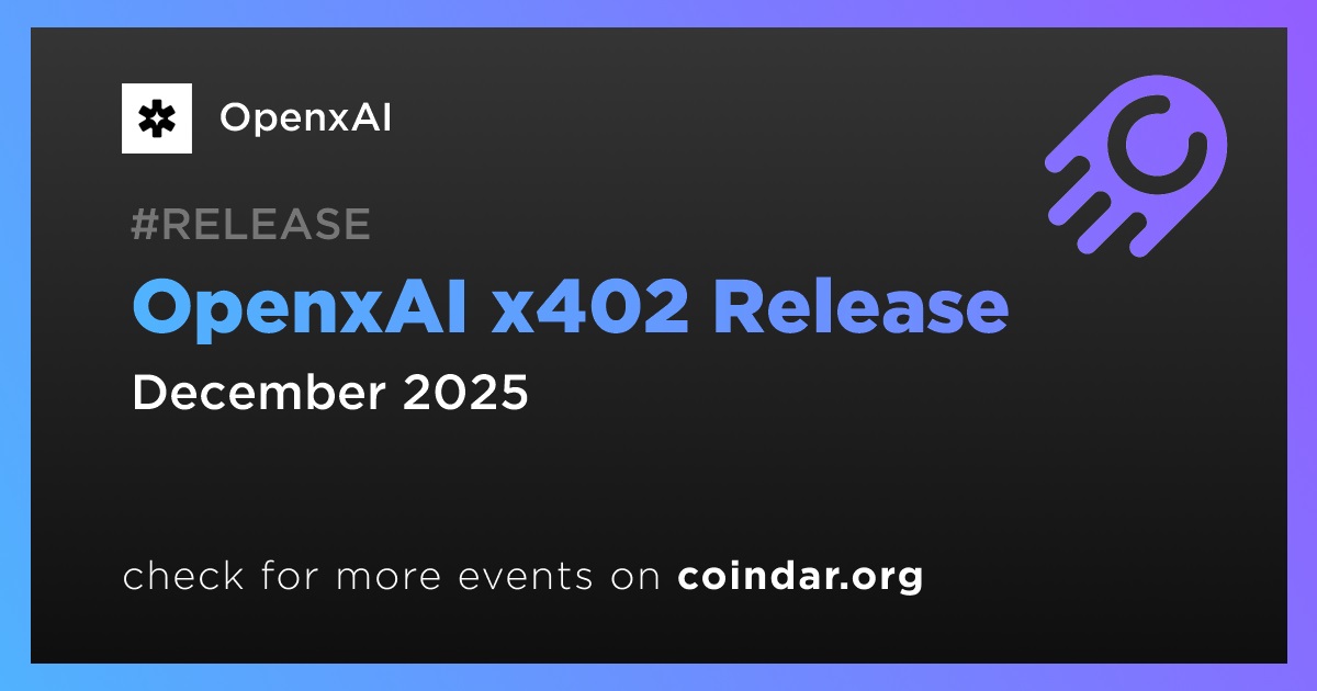 OpenxAI announces the upcoming release of x402, a transaction layer designed to enable financial autonomy for AI systems. The update includes support for AI-managed compute payments, real-time on-chain transactions, and machine-to-machine economic interactions. The launch is scheduled for December.