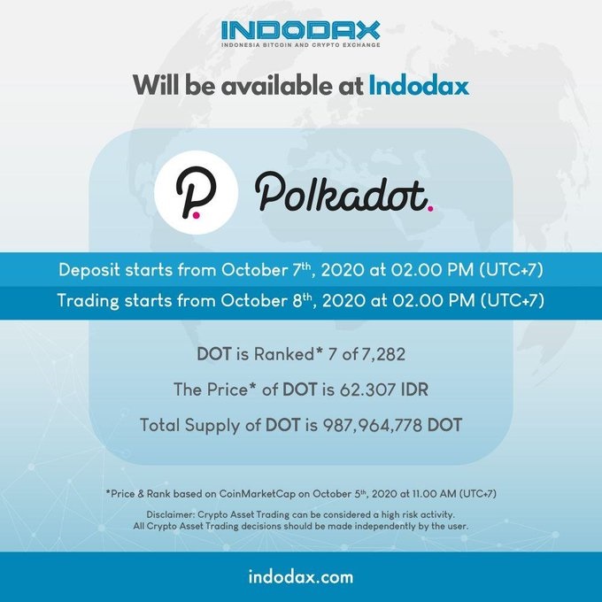 Indodax will be the 105th largest among the exchanges where Polkadot is listed
