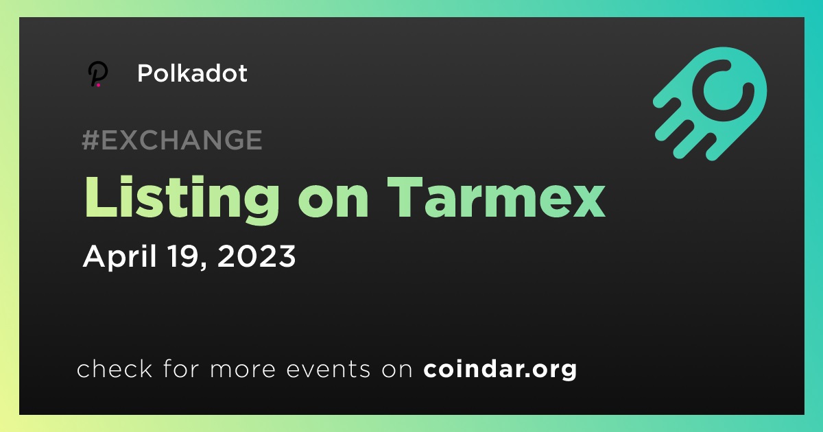 Tarmex will list @Polkadot #DOT token on 2023.04.19 at 08:00 UTC