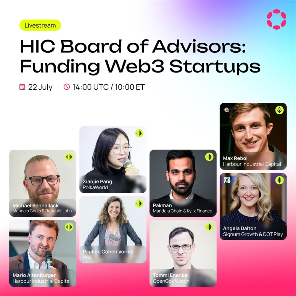 On July 22 at 14:00 UTC, Polkadot will host a livestream featuring members of the Harbour Industrial Capital Advisory Board. The session will cover how the board supports startup investments within the Polkadot ecosystem, followed by a live AMA.