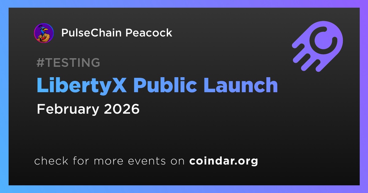 PulseChain Peacock announced that the LibertyX smart-contract code has been finalized and transferred for testing and internal audit. Subject to successful completion of these procedures, a public launch is scheduled for late February 2026.