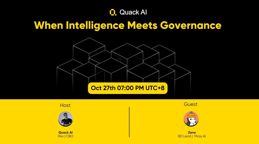 We’re going live on oct 27 with Riiix.eth (CBO, Quack AI) and Smashe.eth (BD Lead, MOSS), exploring how intelligence-driven systems are transforming onchain governance and automation.
