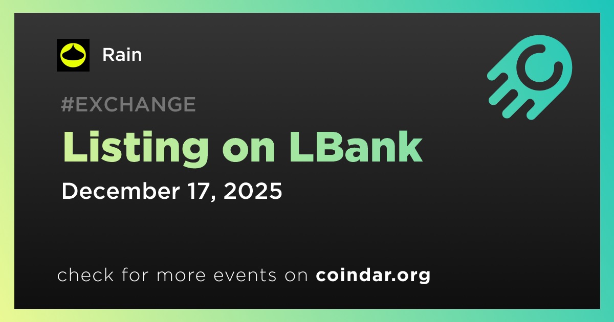 LBank will list Rain (RAIN) on December 17th at 10:00 UTC.
