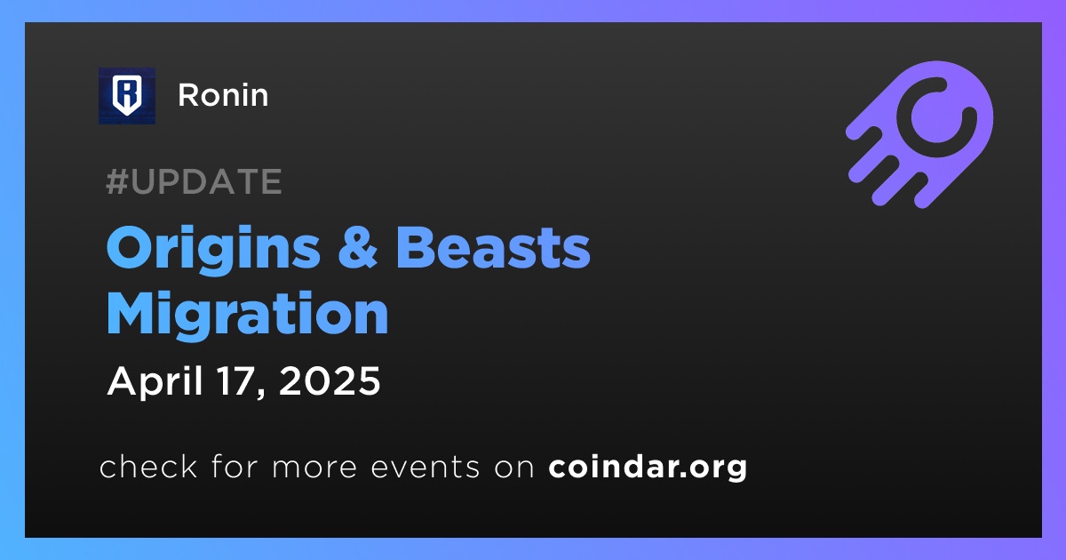 Ronin will host a migration process for the Origins & Beasts collections from Arbitrum to the Ronin Network on April 17th.