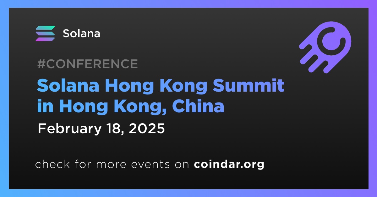 Solana will hold the Solana Hong Kong Summit on February 18th, in Hong Kong. The event coincides with the Consensus HK conference.