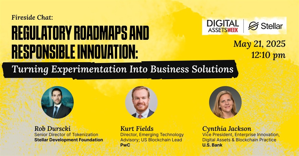 Stellar will be represented at Digital Assets Week on May 21st, where the senior director of tokenezation, Rob Durscki, is scheduled to join speakers from PwC and U.S. Bank to examine regulatory roadmaps and responsible innovation in progressing blockchain pilots to production-ready solutions.