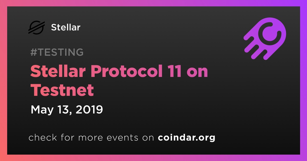 IMPORTANT❗The #Stellar testnet will upgrade to Stellar Protocol 11 on Monday, May 13, 2019 at 0900 UTC. We highly advise all developers to upgrade their SDKs and other dependencies to support Protocol 11 on testnet.