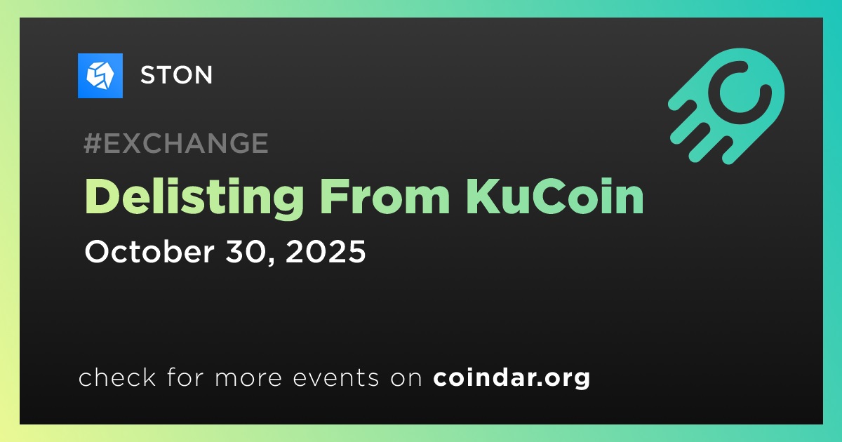 STON will be delisted from the KuCoin exchange on 30 October 2025 at 09:00 UTC. Trading and deposit functions for the asset will cease simultaneously.