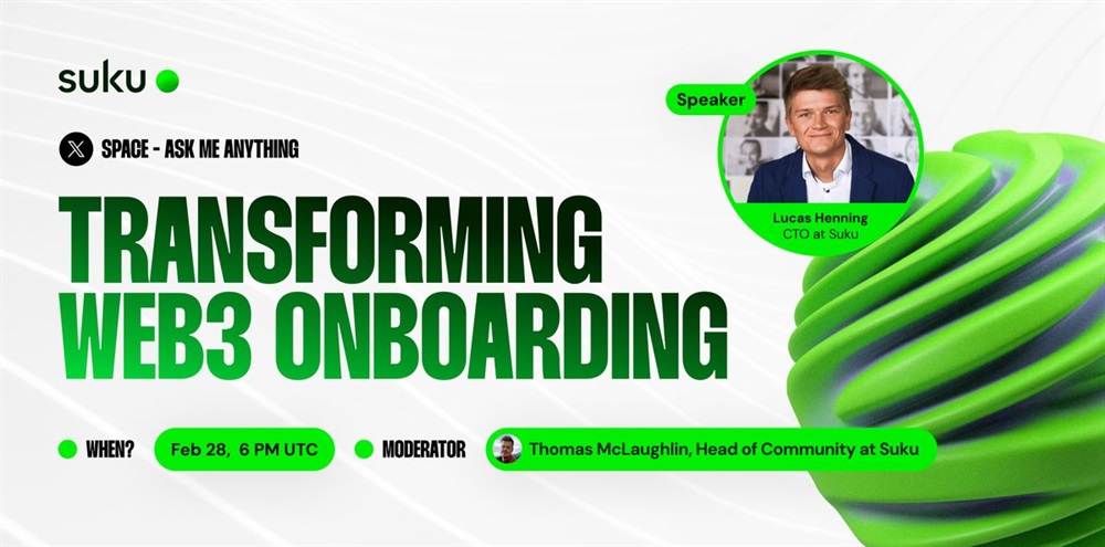 SUKU will host an AMA on X with the chief technology officer, Lucas Henning. The session is set to occur on February 28th at 6 PM UTC.