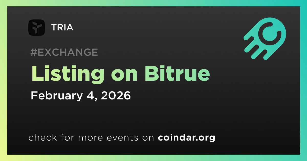 Bitrue will list TRIA (TRIA) on the 4th of February at 10:00 UTC.