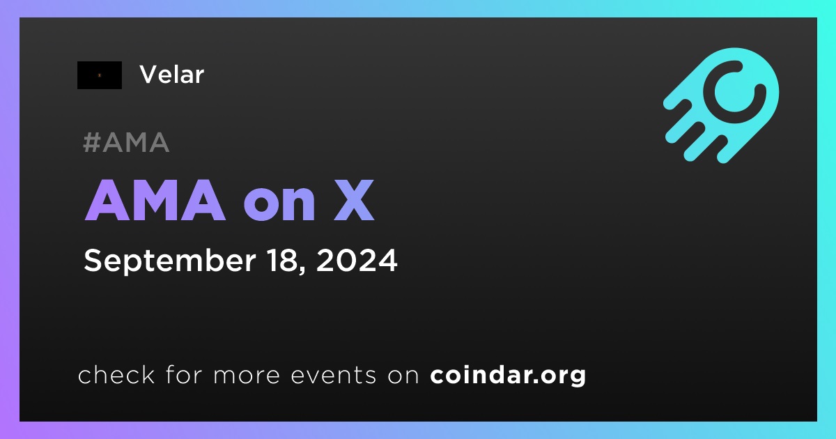 Velar will host an AMA on X on September 18th at 9:30 UTC.