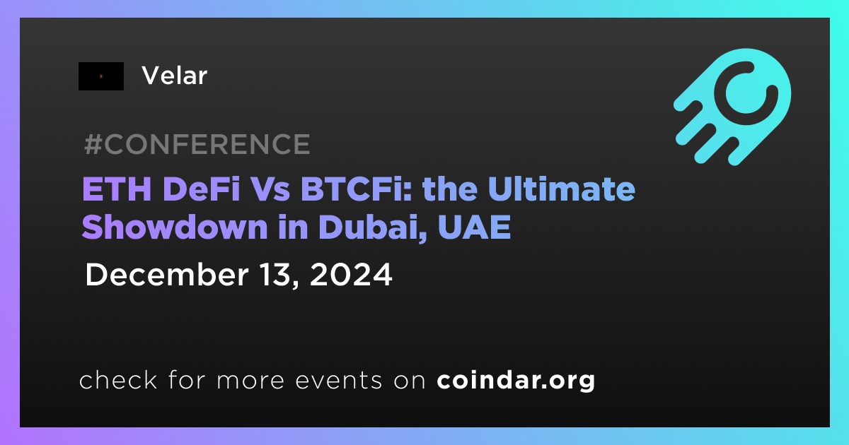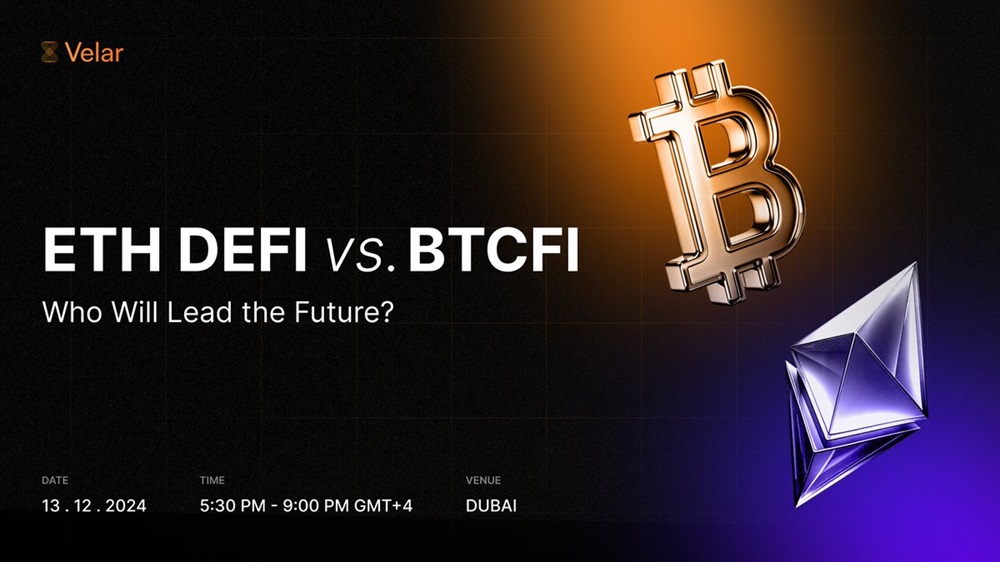 Velar is hosting an event titled “ETH DeFi vs BTCFi: The Ultimate Showdown” in Dubai on December 13 at 13:30 UTC. The event will bring together key industry participants to debate the future of finance.