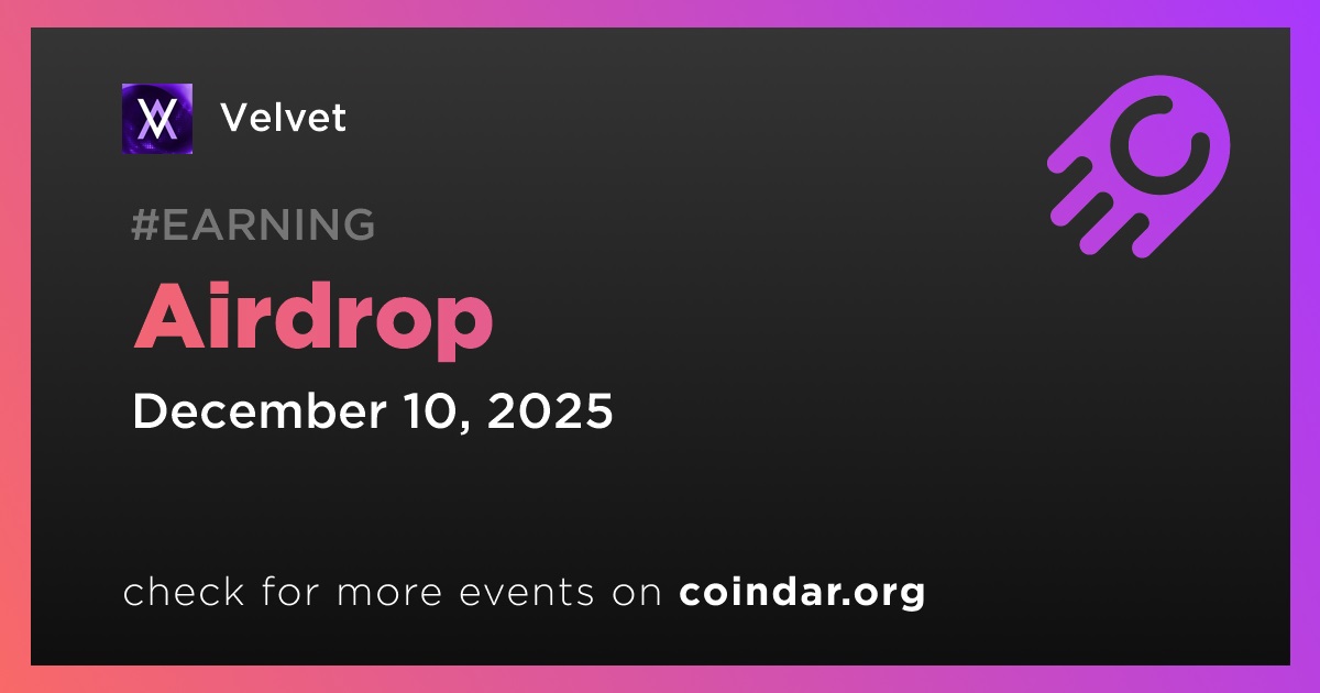 Velvet has scheduled an airdrop of 1,000,000 VELVET tokens for December 10th.