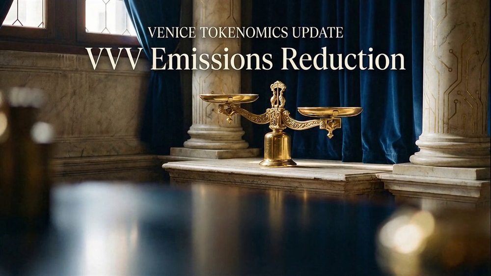 Venice plans to reduce annual emissions of the VVV token starting February 10, lowering the rate from 8 million to 6 million tokens per year.